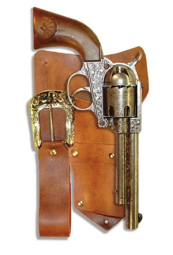 Realistic size metal toy revolver with vinyl leather look holster and belt. Uses 12 shot ring cap not included. Pistol and holster set designed after the original pistol of the Wild West era Has tan vinyl holster with belt Pistol is constructed of die cast metal Fires #914 12-Shot caps Big Tex Holster Set Do not Miss!!